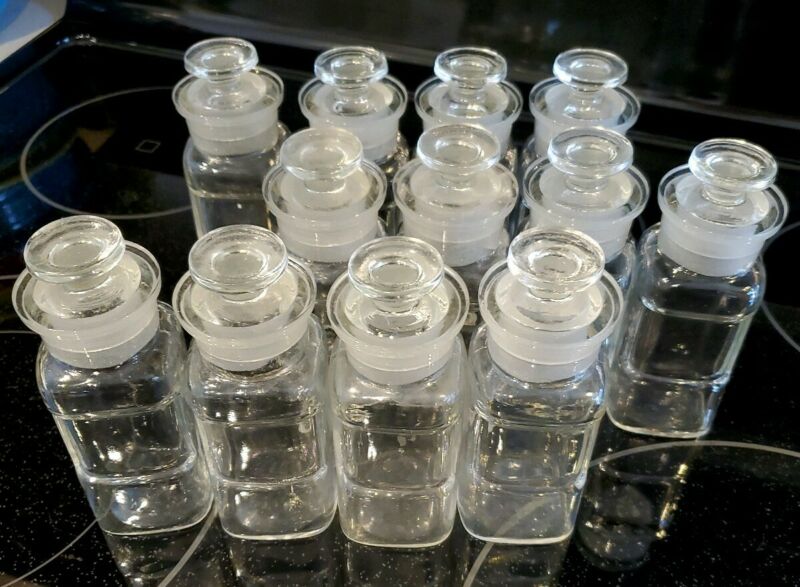 Title (ebay affiliate link): Vintage/ANTIQUE W. T. CO. Glass Apothecary 5.25" w/ Ground Stoppers (lot of 12)