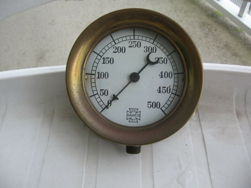 Title (ebay affiliate link): Steam Punk? 4 1/4" U.S. GAUGE CO. N.Y. Pressure Gauge Brass Iron Vintage Old