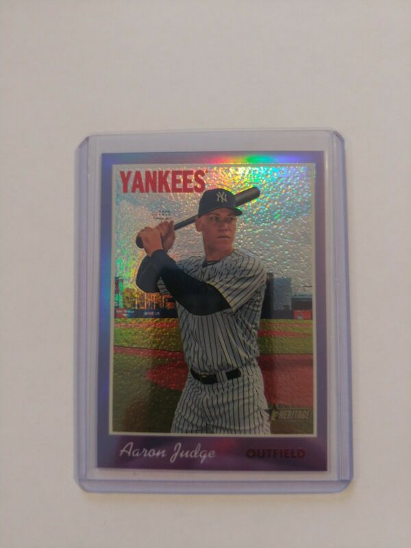 Title (ebay affiliate link): 2019 Topps Heritage Purple Chrome Aaron Judge SP THC-499 New York Yankees