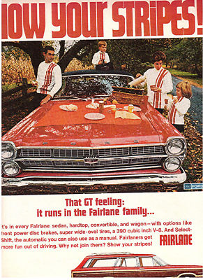 Title (ebay affiliate link): 1967 FORD FAIRLANE GT SHOW YOUR STRIPES MAG ADVERT