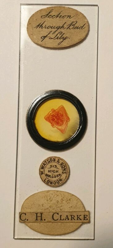 Title (ebay affiliate link): FINE ANTIQUE BOTANICAL MICROSCOPE SLIDES "SEC. THROUGH BUD OF LILY" WHEELER