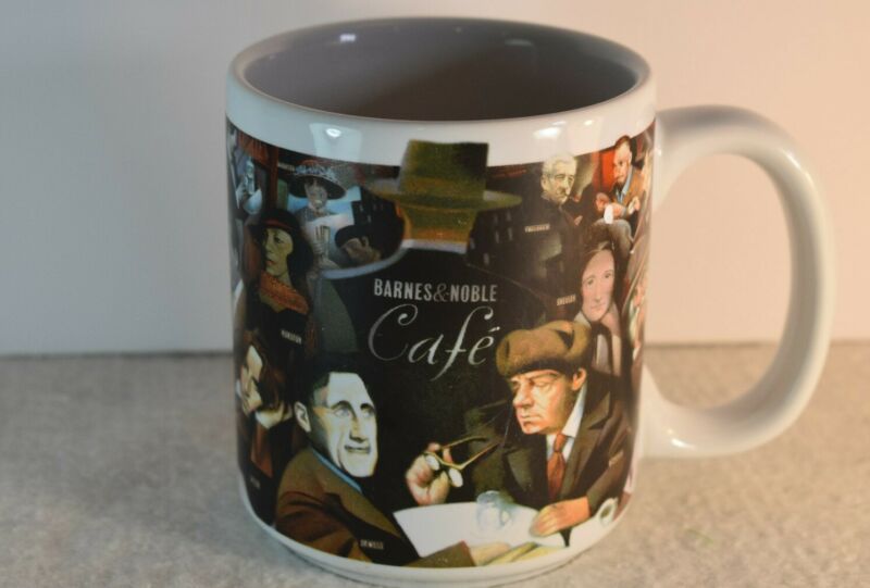 Title (ebay affiliate link): Barnes & Noble Cafe 16oz. Coffee Mug Twain Kipling Wilde Joyce Famous Authors
