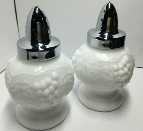 Title (ebay affiliate link): Vintage White Milk Glass Salt Pepper Shakers Grape & Leaf Pattern