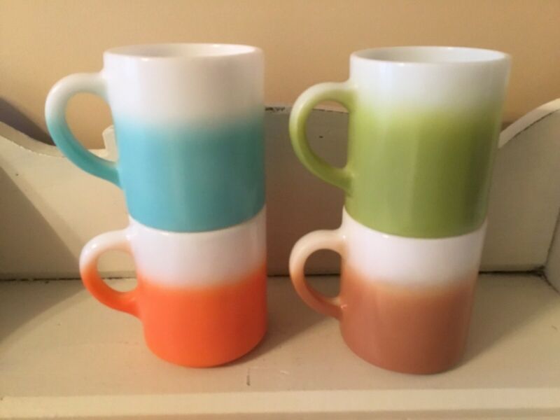 Vintage Hazel Atlas Ombre Milk Glass Coffee Cups Mugs