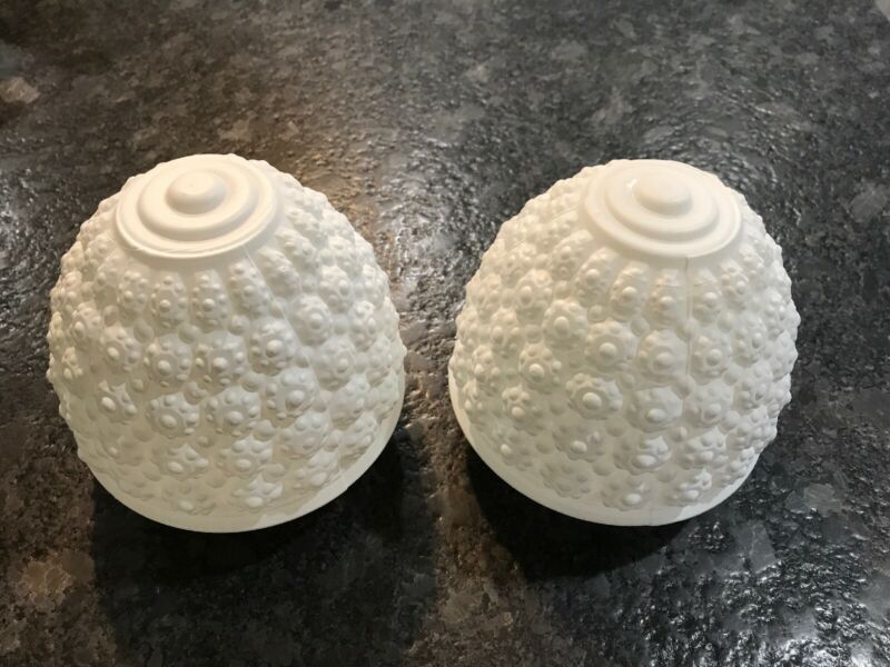 Lot Of 2 vintage Milk Glass shade globe light fixture Unique Pattern