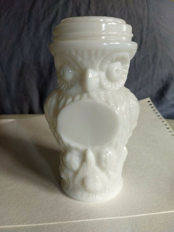 MILK GLASS MUSTARD OWL PACKER JAR GROUND LIP