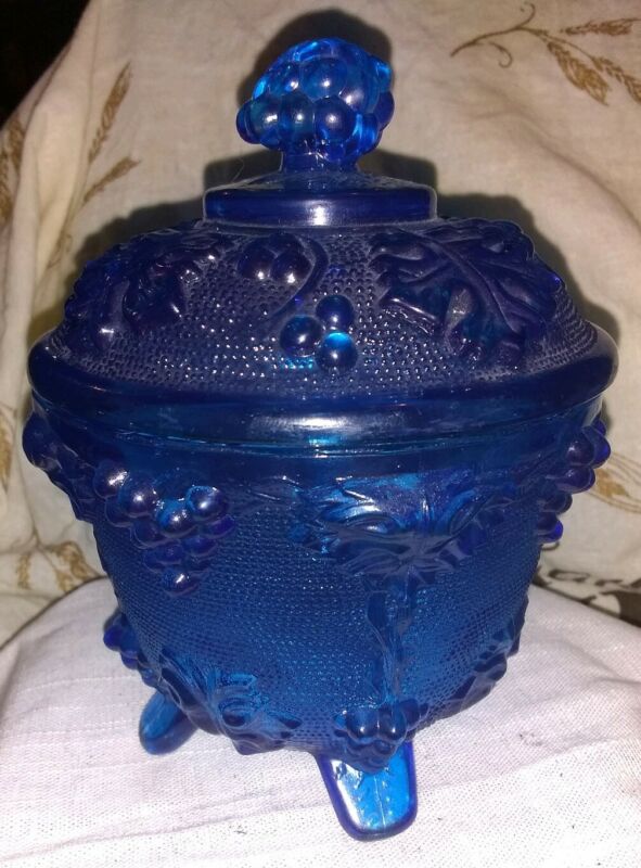 Title (ebay affiliate link): Vintage Jeanette Footed Candy Dish Blue Bowl Grapes Depression Glass COBALT BLUE