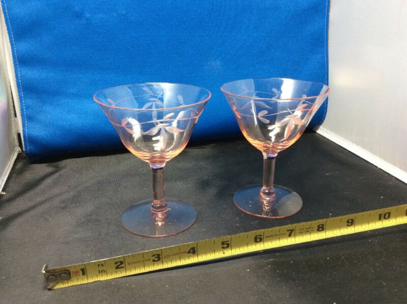 Title (ebay affiliate link): Vintage Pink Depression Glass Etched Cocktail Glasses(set of 2)