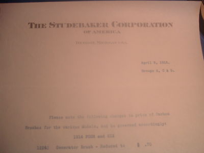 1915 "Studebaker Automobile"price/Carbon Brushes letter