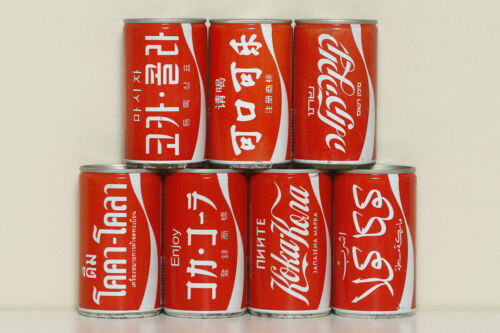 Title (ebay affiliate link): 1984 Coca Cola 7 cans set from Belgium, International languages