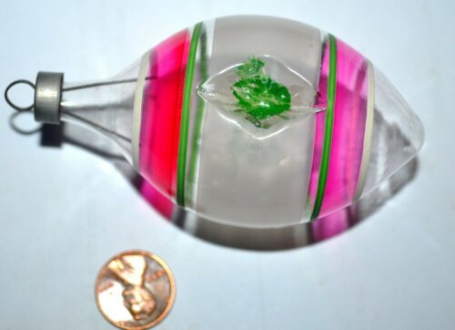 Antique 1930s U.S. unsilvered 2-indent CHRISTMAS ORNAMENT vintage HTF pink green