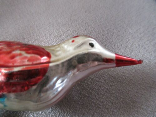 Title (ebay affiliate link): VINTAGE CHRISTMAS ORNAMENT MERCURY GLASS BIRD w SPUN GLASS TAIL RED WINGS