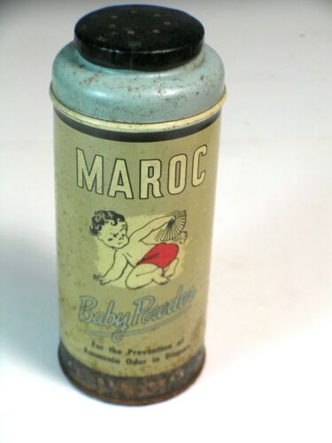 Title (ebay affiliate link): Vintage Maroc Co. Baby Talcum Powder Tin Litho Child Image - Oak Park, Illinois