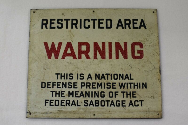 Title (ebay affiliate link): Original Masonite U.S. Government "Warning Restricted Area Sign" Pre 1960''s