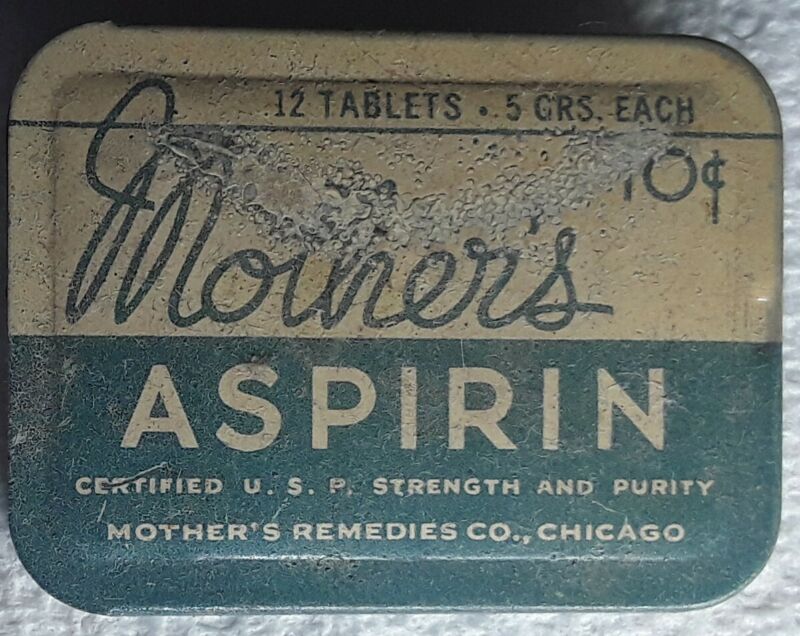 Title (ebay affiliate link): RARE Aspirin Tin Medicine Headache Pharmacy Drug Store Rx advertising