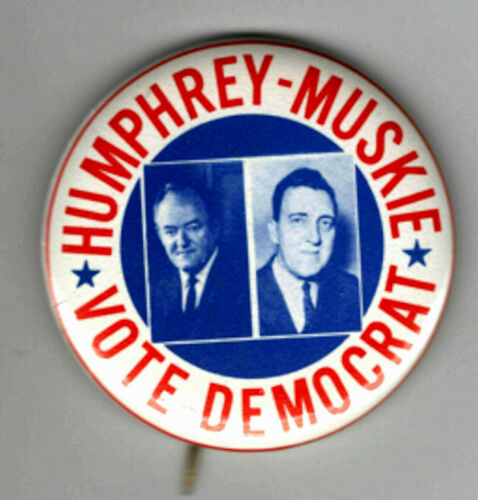 Title (ebay affiliate link): Vintage Political Pin 1968 Hubert Humphrey Pin Humphrey Muskie Vote Democrat
