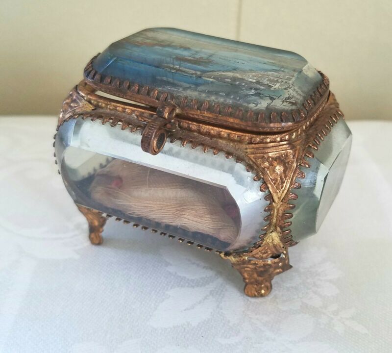 French Napoleon III Ormolu Beveled Jewelry Casket Box