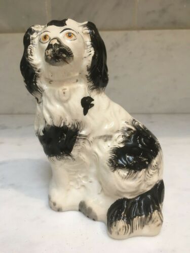 ANTIQUE ENGLISH STAFFORDSHIRE BLACK SPANIEL 5 1/2'''' DOG FIGURE