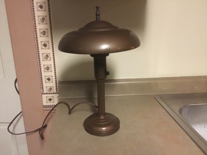 | Classic Vtg Metal Desk Lamp Art Deco Mushroom Flying Saucer Shade |