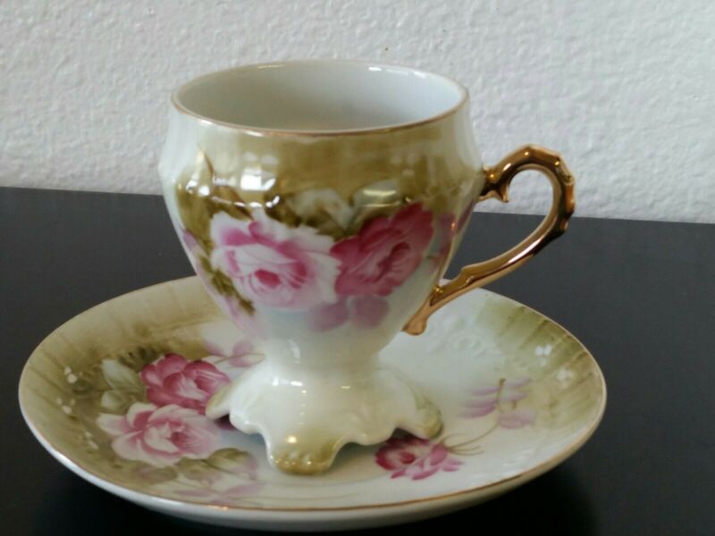 Footed Embossed Pink Roses Porcelain Tea Cup & Saucer Set