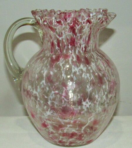 VICTORIAN PINK & WHITE SPATTER GLASS WATER PITCHER