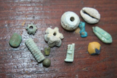 Title (ebay affiliate link): Ancient Egyptian faience amulets 1st century BC eye, lotus, beads,leaf