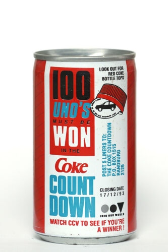 Title (ebay affiliate link): 1993 Coca Cola can from South Africa, 100 Uno''s must be won