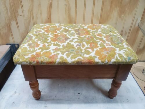 Title (ebay affiliate link): Vintage Tapestry Foot Stool Flip Lid Storage Ottoman Sewing Box Wood