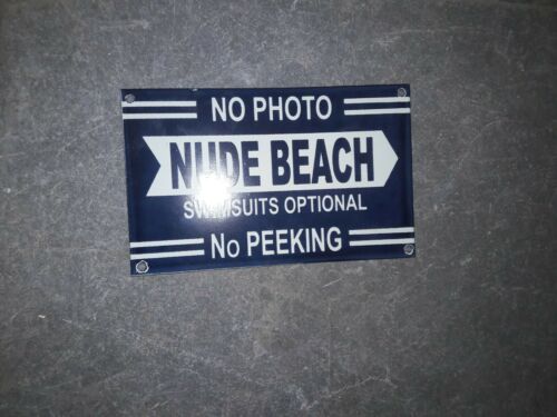 Porcelain Nude Beach Enamel Sign Size 8" x 5" Inch