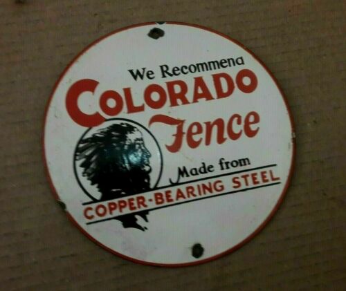 Porcelain Colorado Fence Enamel Sign Size 6" Inches