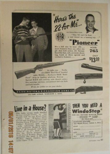 September, 1948 Harrington and Richardson Pioneer original, vintage magazine ad