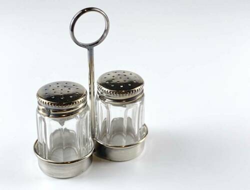 Silver salt & pepper holder set 1940-50. 925HB . 835HB . Antique