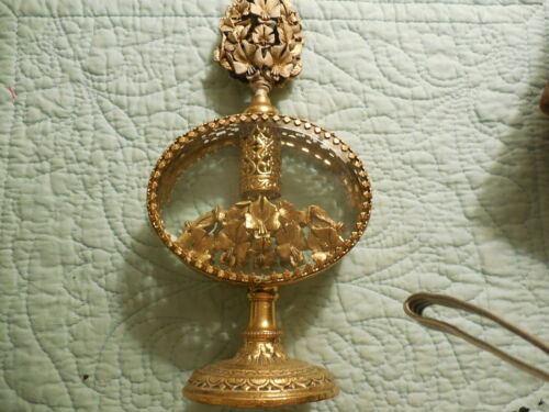 Antique Gold Filigree Glass Vanity Perfume Bottle 9 1/4" high