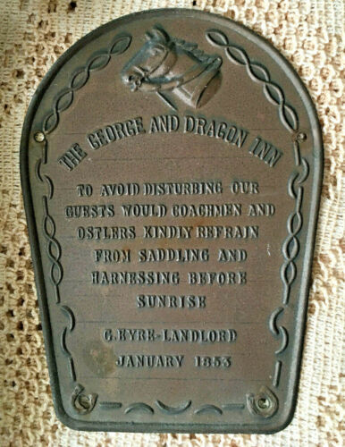 Antique 1853 copper Innkeepers door plaque, George & Dragon