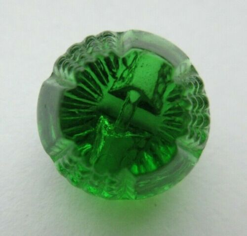 Title (ebay affiliate link): Splendid Antique~ Vtg Emerald Green Depression GLASS BUTTON Unique Shape (P)