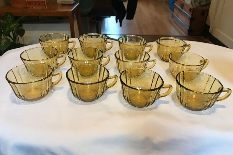 Title (ebay affiliate link): 12 Vintage 1930''s Madrid Yellow / Amber Federal Depression Glass Coffee Tea Cups