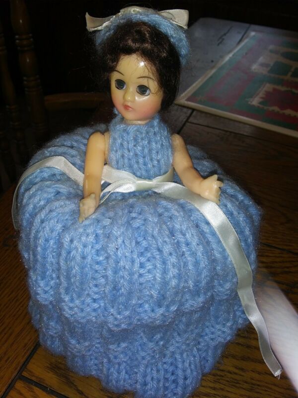 Title (ebay affiliate link): Vintage Blue Bathroom Decor Hand Knitted Toilet Paper Doll Cover