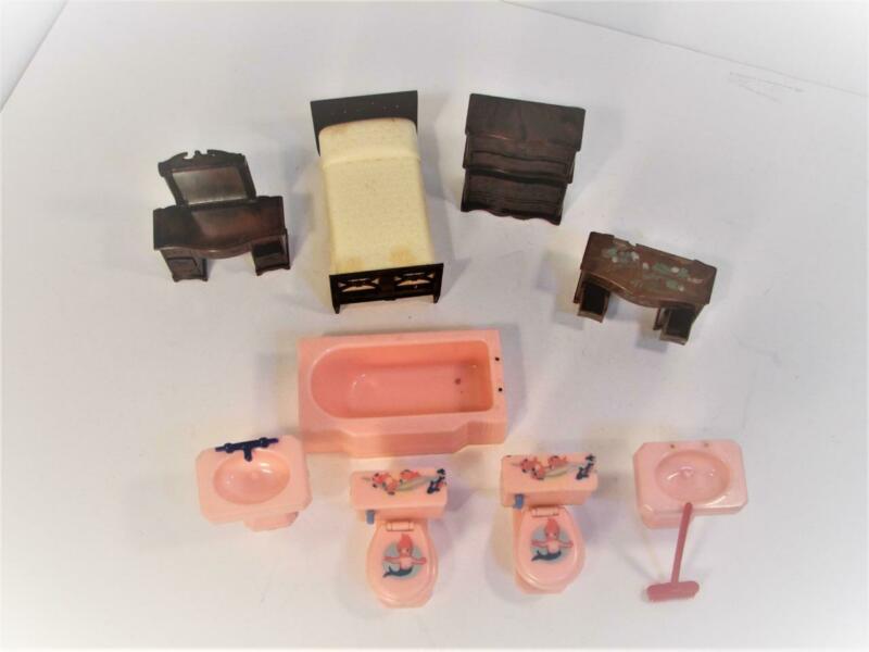 VINTAGE RENWAL DOLL HOUSE FURNITURE BATHROOM BEDROOM AND MORE