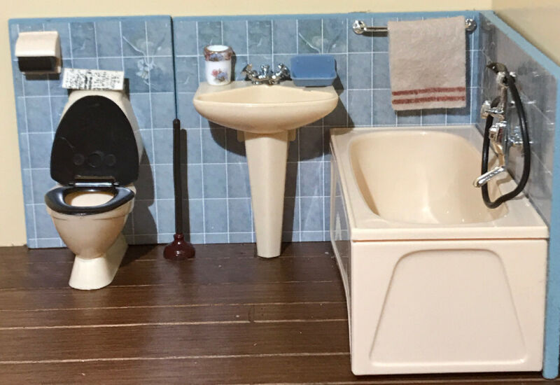 Title (ebay affiliate link): Dollhouse BATHROOM Set Miniature Furniture Lundby Vintage "Tile" Walls & More