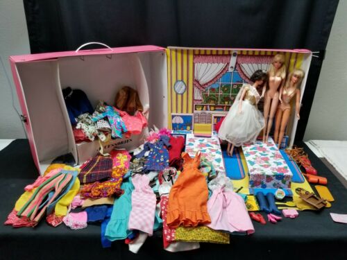 Title (ebay affiliate link): Vintage 1970s Barbie Lot, 3 Dolls & Bunches of Clothes Fashion Doll Bedroom Case