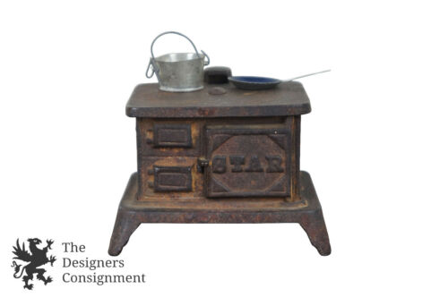 Title (ebay affiliate link): Antique Star Cast Iron Toy Kitchen Stove w/ Accessories Tin Bucket Frying Pan