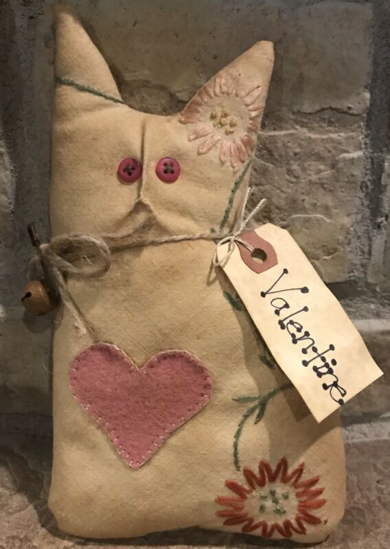 Title (ebay affiliate link): Primitive *Valentine Kitty* Shelf Sitter-Made From Vintage Table Linen