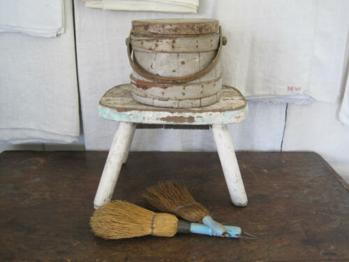 Title (ebay affiliate link): Vintage Primitive White Paint with Blue Trim Small Wood Stool American Find AAFA