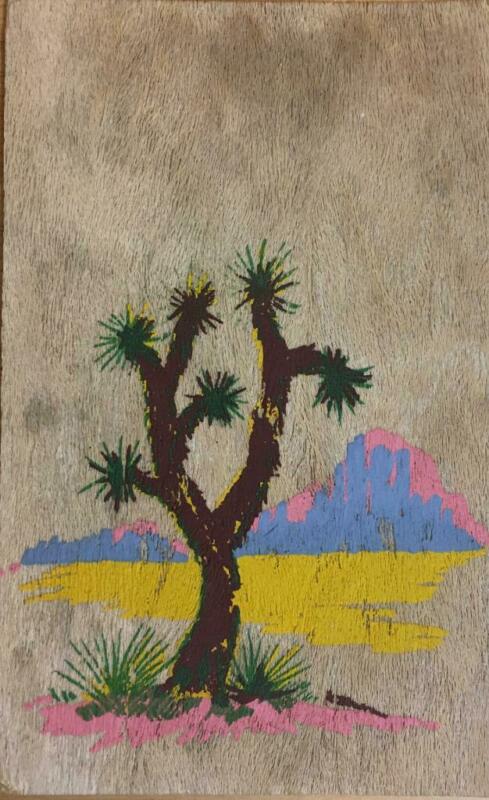 Title (ebay affiliate link): YUCCA WOOD (brevifolia) Desert Painting Los Angeles 1940 Vintage Wood Postcard
