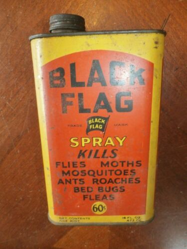 Vintage Antique Tin Metal Black Flag Insect Spray Poison Bottle Can Advertising