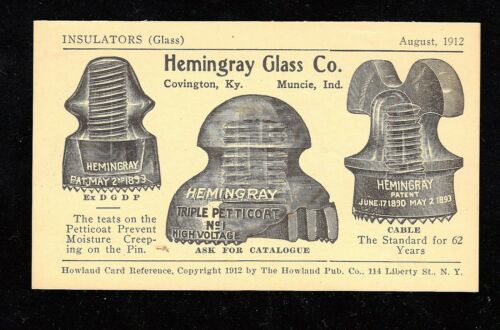 HEMINGRAY Glass Company INSULATORS Trade Card 1912