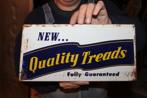 Vintage 1950''s Quality Treads Tires Gas Oil 14" Metal Sign Z