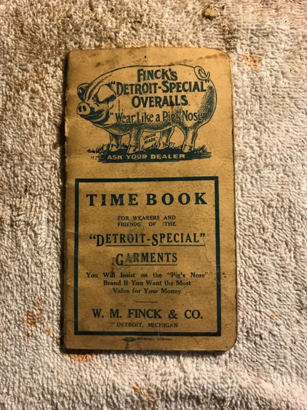 Title (ebay affiliate link): Vintage Rare Original Adv Finck''s Detroit Special Overalls Pigs Nose time book.
