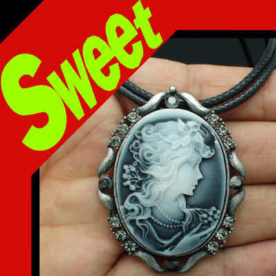 Antique st Copper Beautiful Girl Cameo Necklace D710