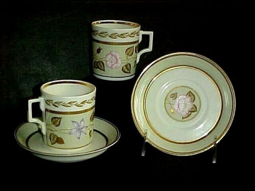 VTG. RUSSIAN IMPERIAL PORCELAIN ST. PETERSBURG CUPS & SAUCERS, GOLD BANDING 4 PC